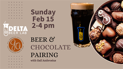 Delta Beer Lab is partnering with local chocolatier Gail Ambrosius to bring you a delicious beer and chocolate pairing. Enjoy 4 unique beverages paired brilliantly with 4 amazing chocolates.