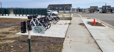 The Velo UnderRound is a two-level interchange among five regional trails, serving Fitchburg, Madison, Verona, and locations throughout Wisconsin and northern Illinois. Water, rest rooms, air pump, and repair stand with tools are nearby at Fitchburg's Dawley Bike Hub. Epic mountain biking is adjacent at the Dane County Seminole Mountain Bike Park, just south on the Military Ridge Path at Saris Trails, and on the Military Ridge State Trail at Fitchburg’s Quarry Ridge Recreation Area.